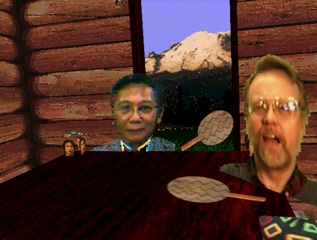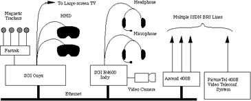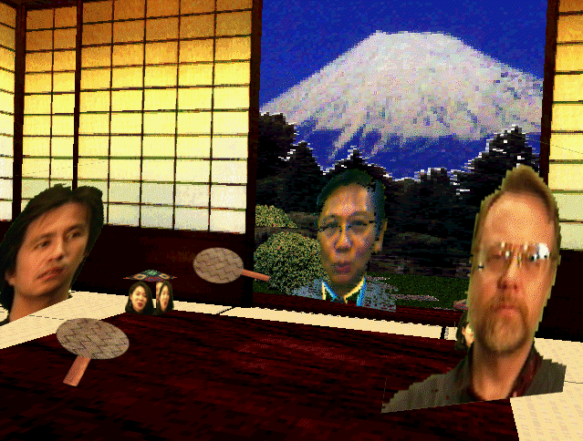 Phase 3 culminated in a public demonstration linking Tokyo and Seattle in a realtime VR teleconference during November 14-17, 1994. The demo site in Tokyo was the NICOGRAPH Convention (the Japanese equivalent of SIGGRAPH), and the Seattle site was the HITLab.